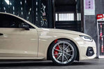 On current photos, you can see Forza Performance Group installed Front Big Brake kit for BIG BRAKE KIT for AUDI A4 B9 2015+ with 380x36mm brake rotor discs on 19 inches.